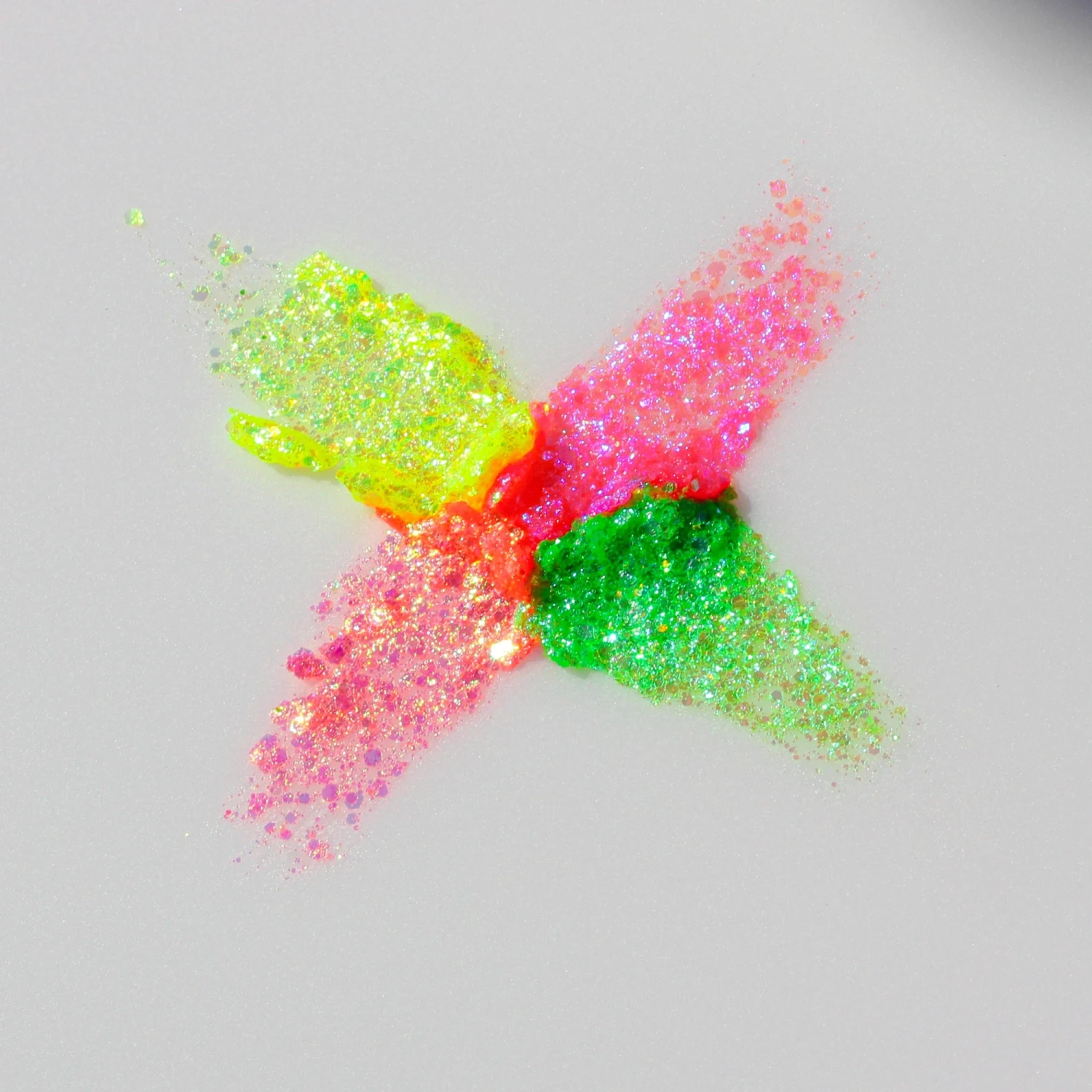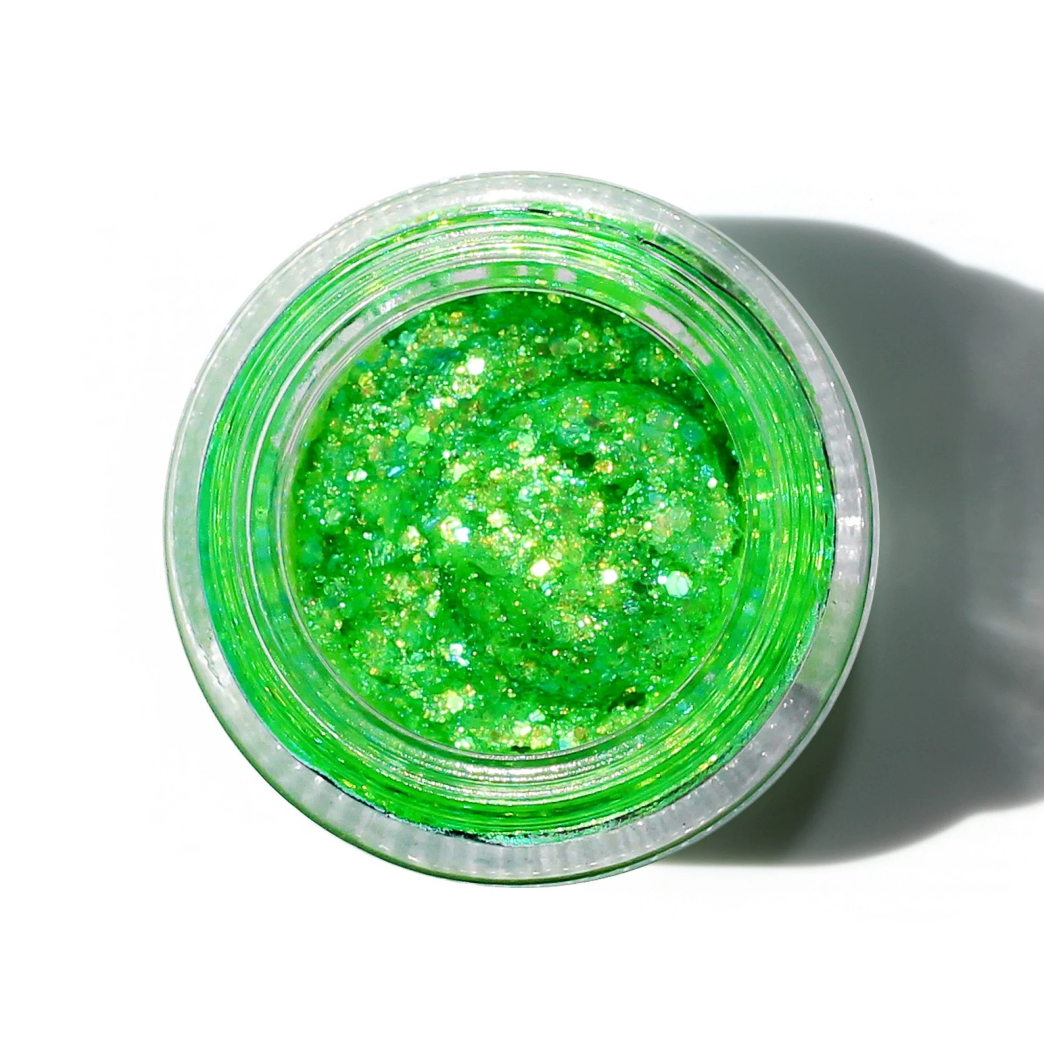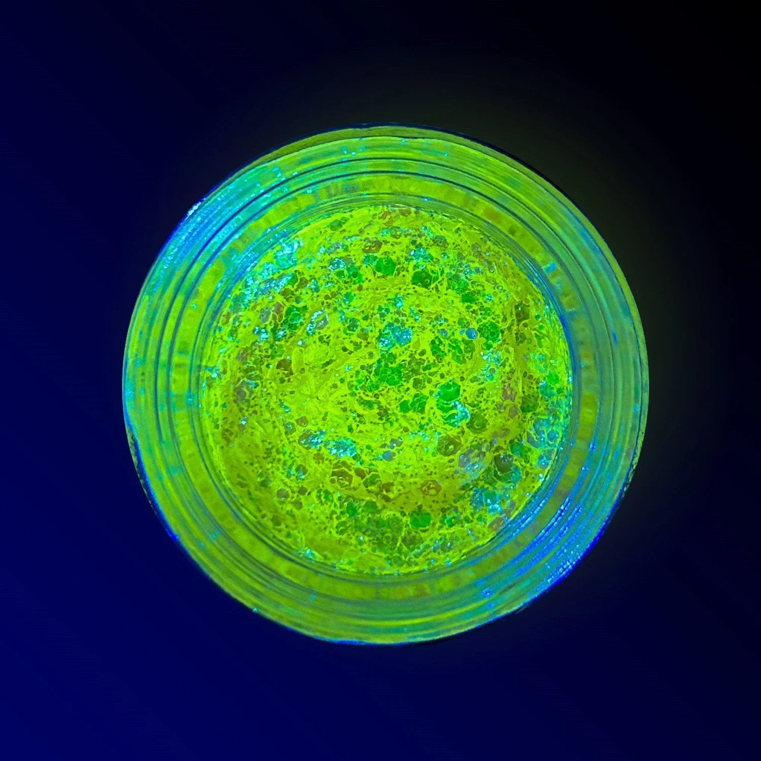 A light gel containing glitter pigment similar in texture to Spacepaste provides a sheer and pretty pastel affect in normal daylight and then glows under UV light making it perfect for editorials, runway and for personal use at festivals, parties & raves!