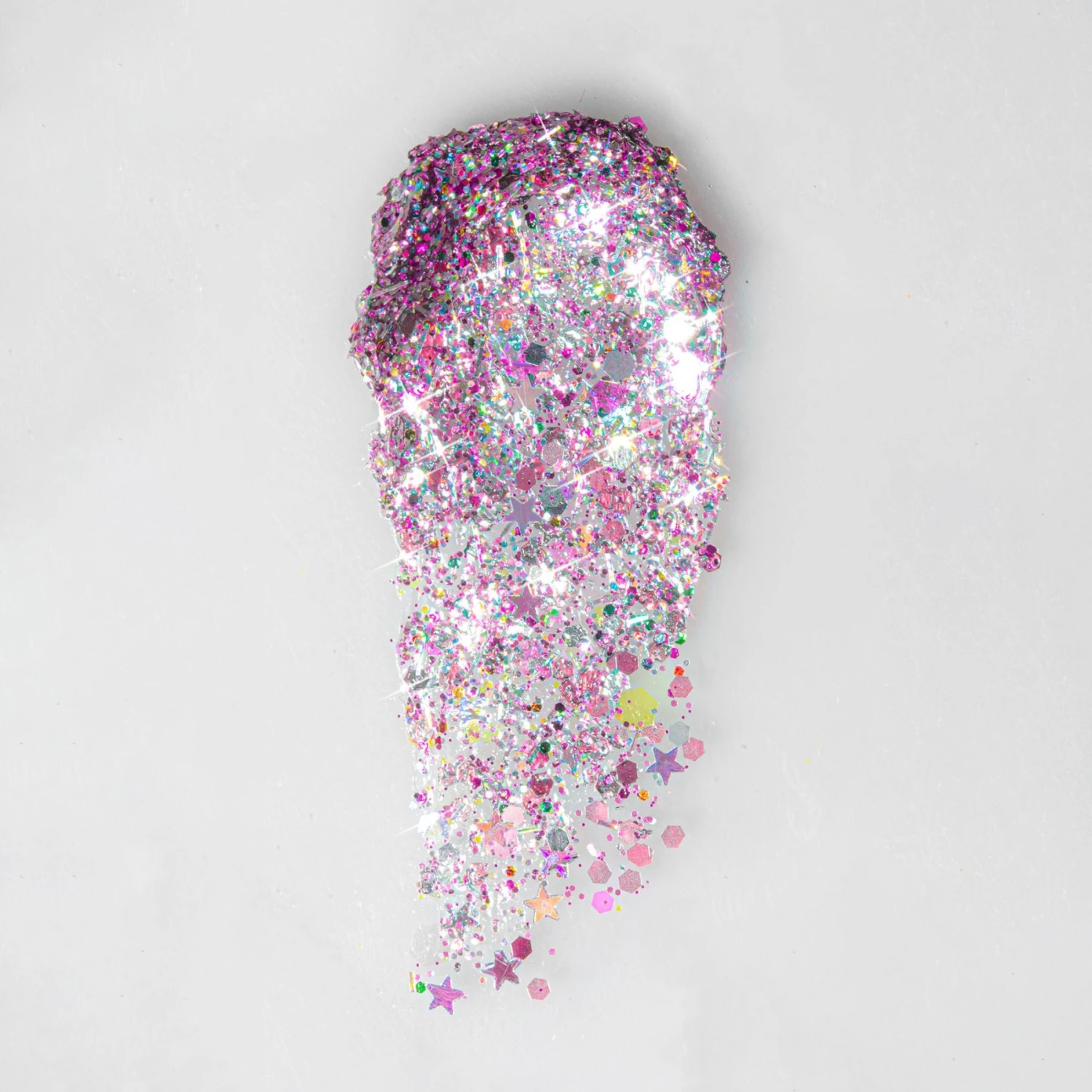 The formula is packed full of sparkling glitter suspended in a clear, adhesive gel making it the easy, mess free way to apply full on glitter for fantastic effects.